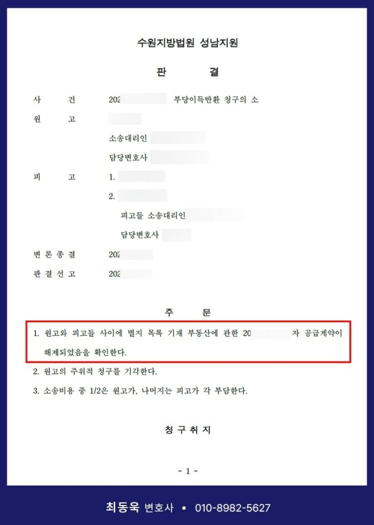 최동욱 변호사는 국내 대형 로펌인 법무법인 세종에서의 경험을 바탕으로, 부동산 관련 보전처분, 본안소송, 강제집행에 이르기까지 전 단계에서 승소와 피해 회수를 목표로 한 통합 법률 서비스를 제공하고 있습니다. 수익형 부동산으로 어려움을 겪고 있는 의뢰인들을 위해, 변호사가 직접 상담하며 신속하고 전략적인 대응책을 수립해 드립니다. 보다 구체적인 상담이나 전문적인 조력이 필요하신 경우, 아래 연락처를 통해 문의하시기 바랍니다.