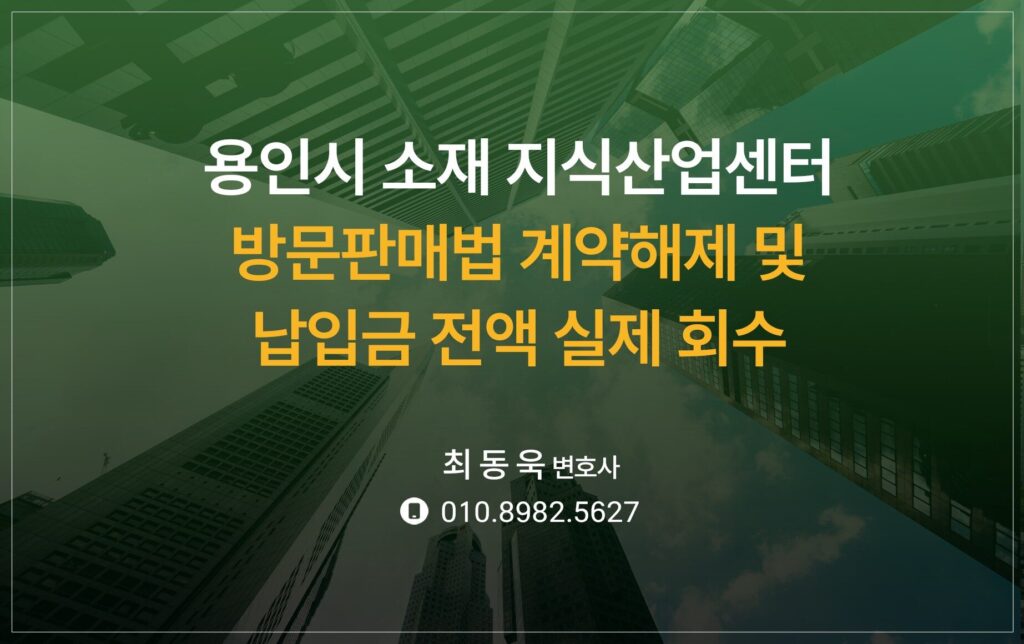 용인시 소재 지식산업센터 방문판매법 계약해제 및 납입금 전액 실제 회수 성공사례!