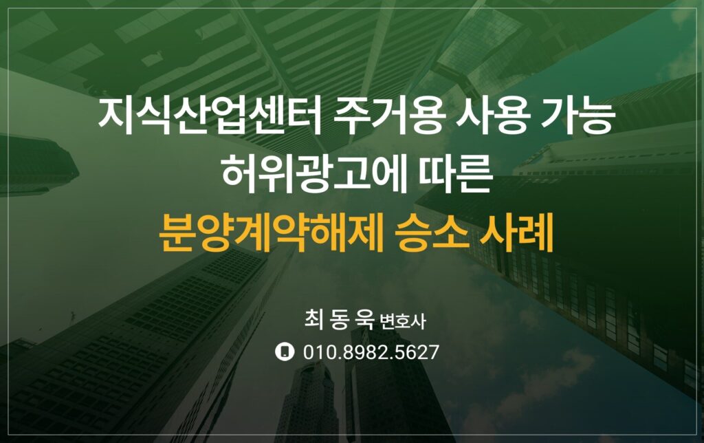 지식산업센터의 주거용 사용 가능 허위광고에 따른 분양계약해지 및 납입금 반환 법적 대응방안 및 승소사례