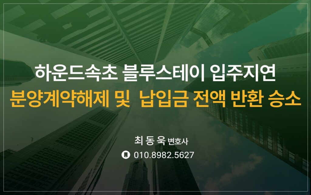 하운드속초 블루스테이 입주지연 분양계약해제 및 분양대금 약 1억 300만 원 반환 승소판결!