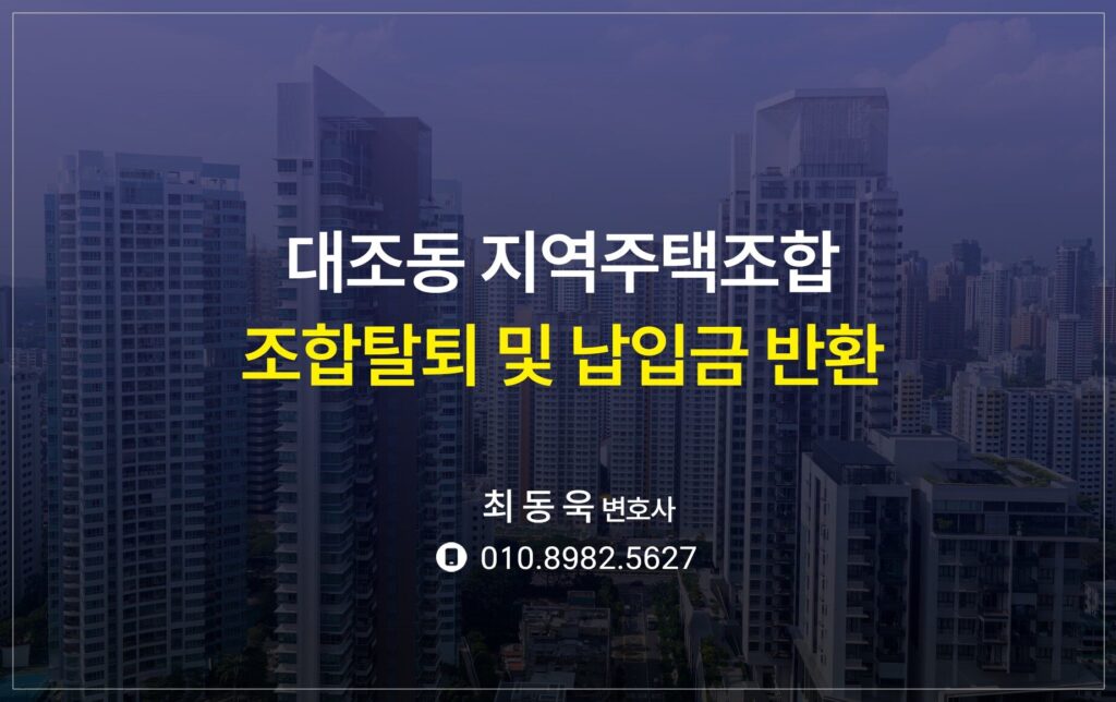 은평구 대조동 지역주택조합 조합탈퇴 및 납입금 환불 (대조동역세권 지역주택조합, 베니스 더 대조)