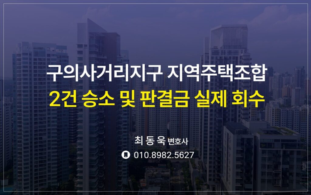구의사거리지구 지역주택조합 상대 2건의 승소판결 및 합계 약 1억 7천만원 실제 회수