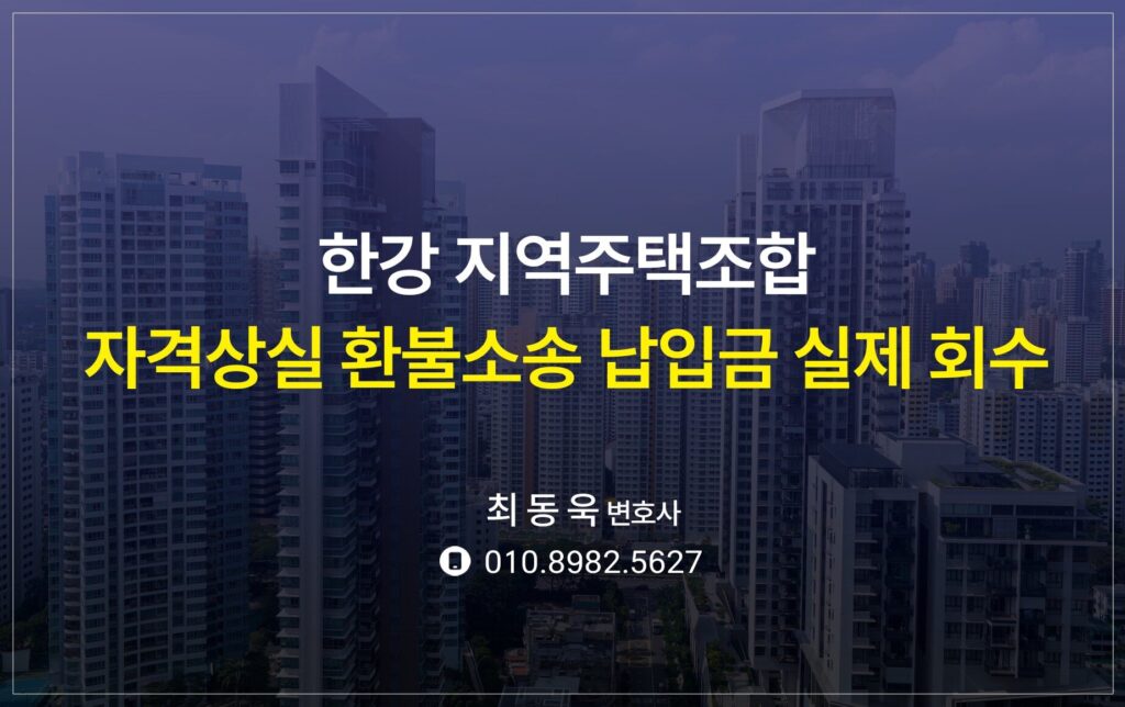 한강 지역주택조합 자격상실 환불금 청구소송 및 납입금 3억 1천만원 실제 회수