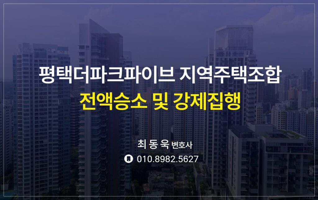 [지역주택조합] 평택더파크파이브 지역주택조합 상대 전액승소 및 강제집행