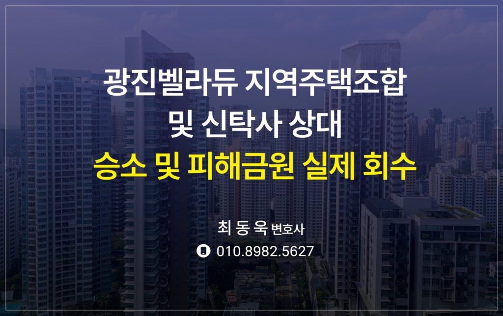 광진벨라듀 지역주택조합 및 신탁사 상대 승소 및 8억 2천만원 실제 회수!