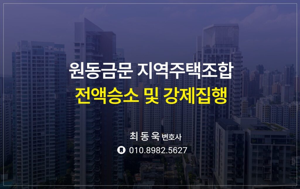 [지역주택조합] 원동금문 지역주택조합 상대 전액 승소 및 강제집행 (오산 서해 그랑블)