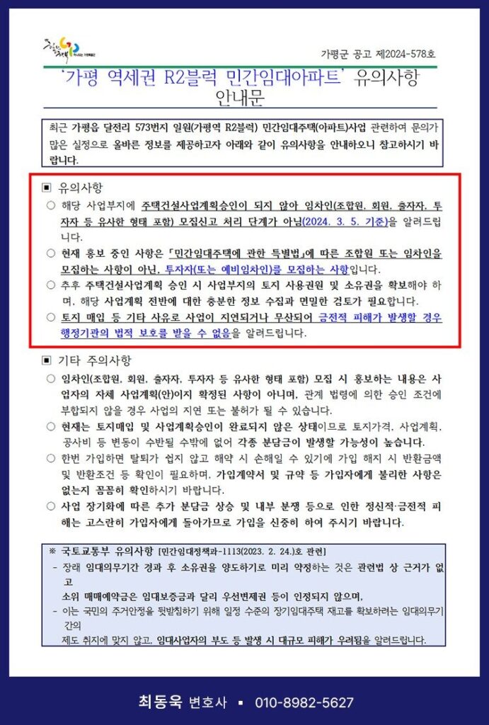 특히 가평군청에서도 공식적으로 가입 주의 공지를 한 사업장으로, 아직 주택건설사업계획승인조차 받지 못한 상태임에도 불구하고,
