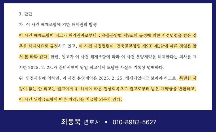 분양계약서에 포함된 시정명령 관련 해지 조항은 단순한 형식적 문구가 아닙니다.