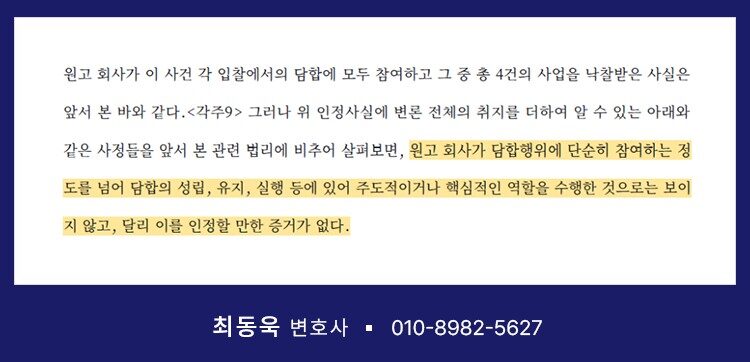 위 사례는 담합 사실이 있다고 하더라도 무조건 최고수준의 제재가 부과되는 것은 아니며, 실제 가담 정도와 역할에 비례하여 제재수위가 정해져야 한다는 점을 명확히 한 판결입니다. 또한 행정청의 재량 역시 비례성과 합리성을 갖춘 범위 내에서만 행사될 수 있다는 점을 재확인한 의미가 있습니다.