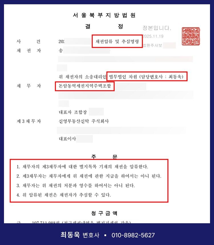 돈암동역세권 지역주택조합 상대 전액승소 및 1억 600만원 실제 회수!