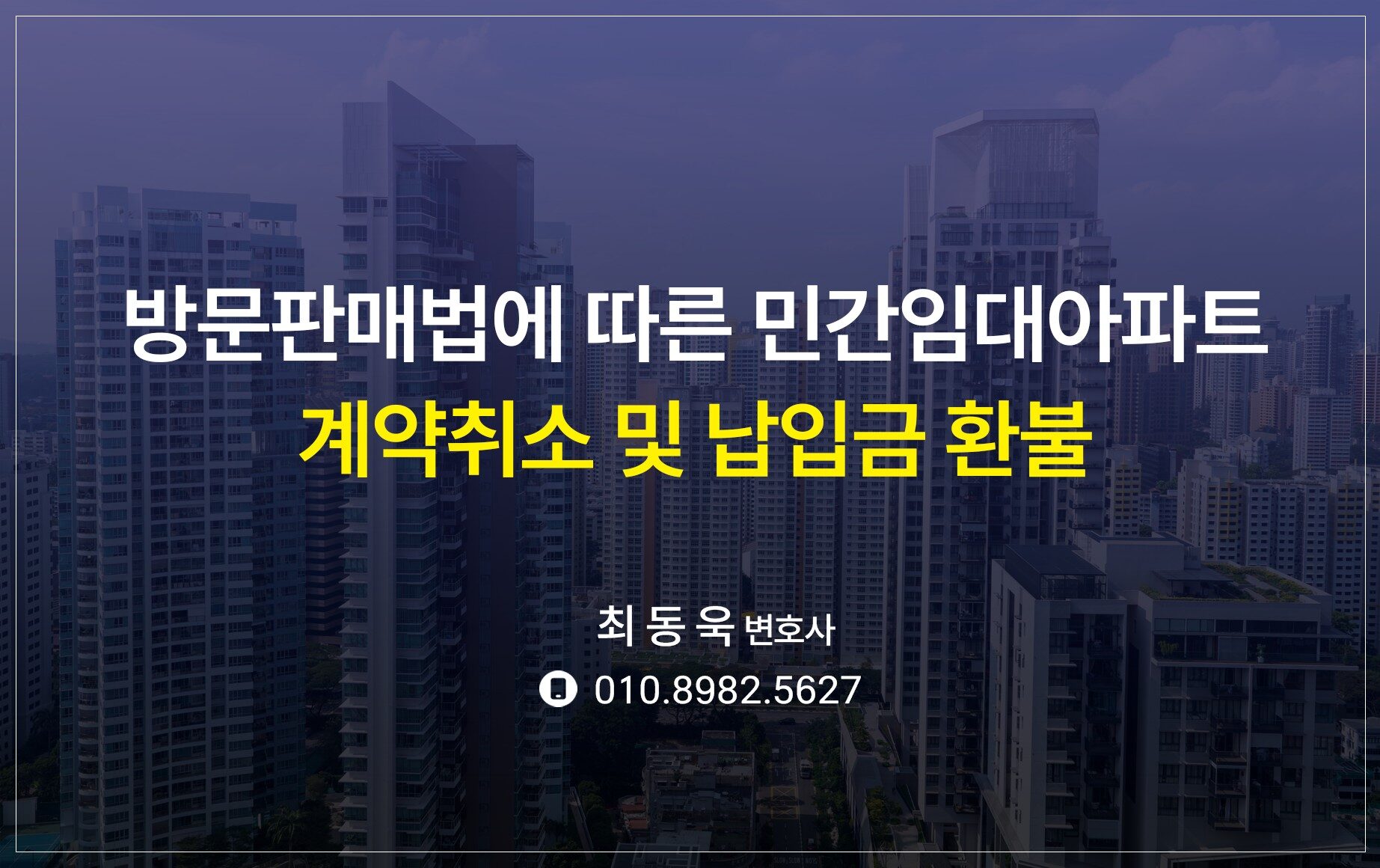 이에 이번 글에서는 민간임대아파트 계약 해제 방안 중 하나인 ‘방문판매법’에 따른 계약 해제 및 납입금 반환 절차를 중심으로 살펴보겠습니다.
