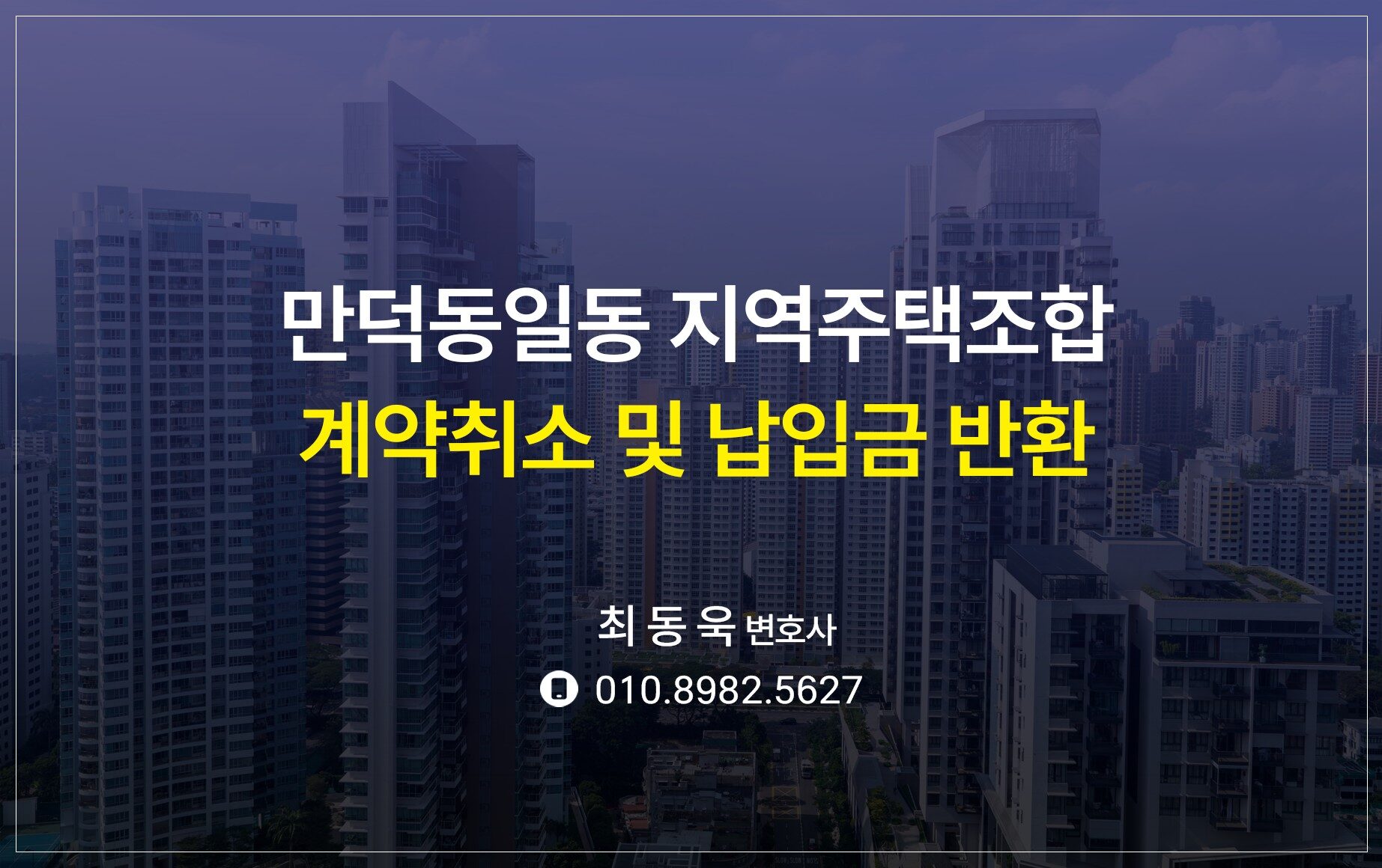 이에 본 글에서는 만덕동일동 지역주택조합 사업의 진행 경과를 토대로 법률적 쟁점을 검토하고, 조합원 탈퇴 가능성 및 이미 납입한 분담금 환불을 받을 수 있는 방안에 대해 구체적으로 설명드리고자 합니다. 지역주택조합 가입으로 인해 장기간 재산권 침해와 불확실성에 놓여 계시다면, 본 글을 참고하시어 사안별 법률 검토를 받아보시길 권해드립니다.