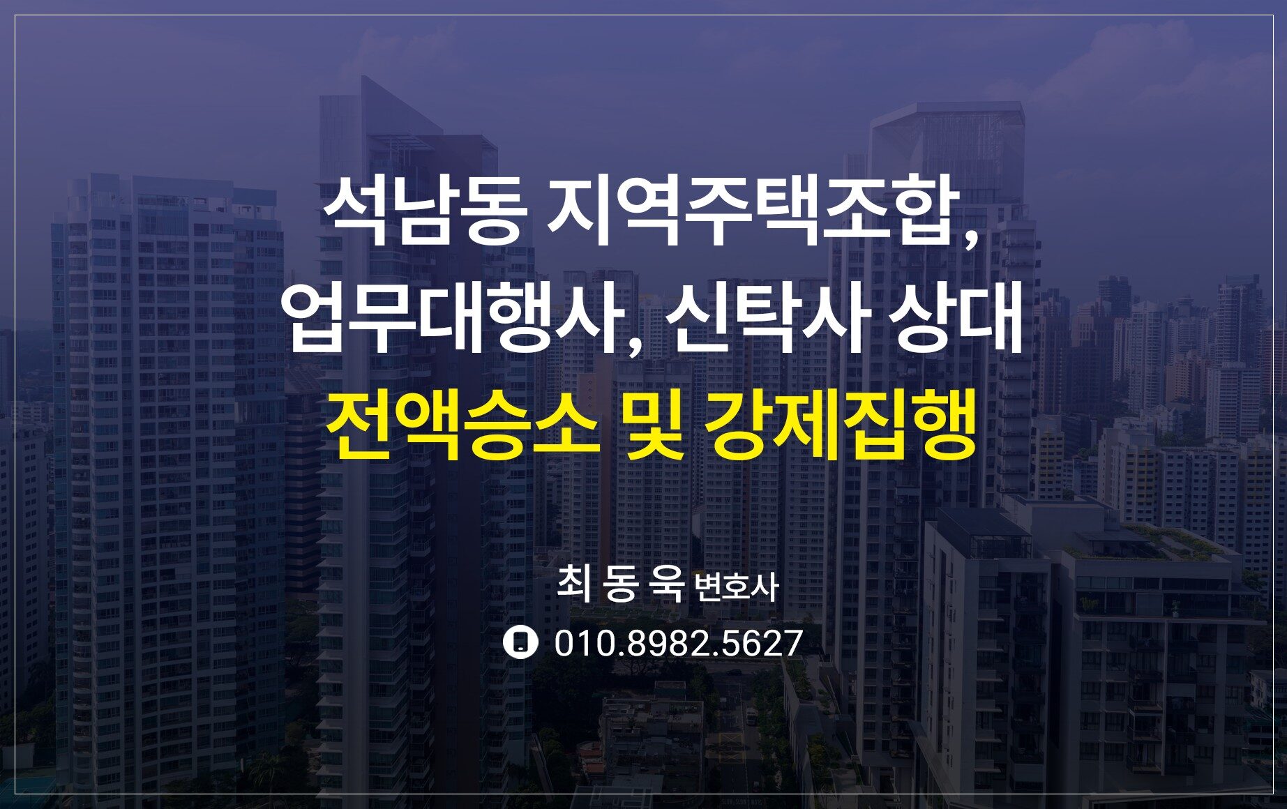 석남동 지역주택조합, 업무대행사, 우리자산신탁 주식회사를 상대로 합계 1억원 전액승소