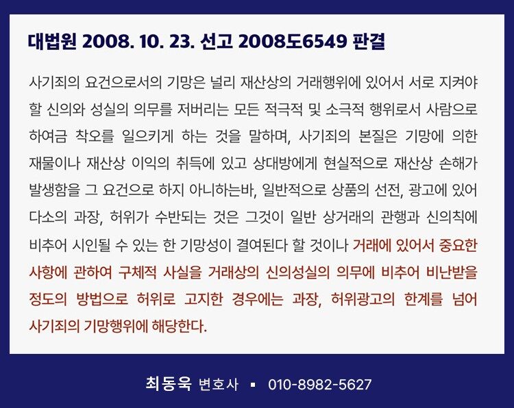 신의성실의 원칙에 비추어 비난받을 정도의 ‘명백한 허위 광고’가 존재해야 합니다.