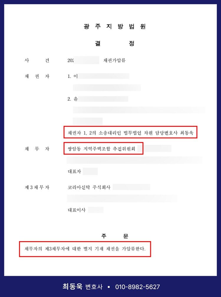 쌍암동 지역주택조합 상대 1·2심 모두 전액승소 및 강제집행