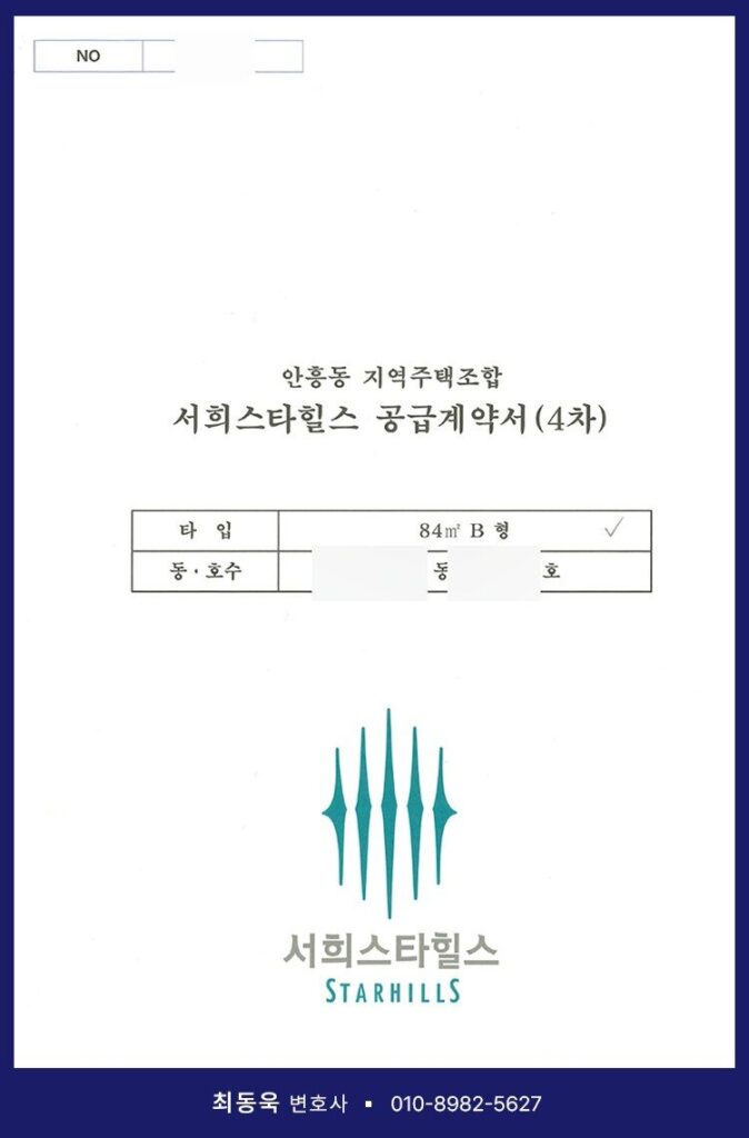 이천시 안흥동 279-2 일원에서 ‘이천 서희스타힐스’라는 상호로 아파트 건립을 추진 중인 안흥동 지역주택조합 역시 이러한 문제를 안고 있던 사업장 중 하나입니다. 실제로 해당 사업장에 임의세대(준조합원)로 가입하신 다수의 가입자분들께서 최동욱 변호사를 통해 계약취소 소송을 제기하였고, 그 결과 납입금 전액을 반환받는 등 피해를 회복한 사례가 반복적으로 발생하였습니다.