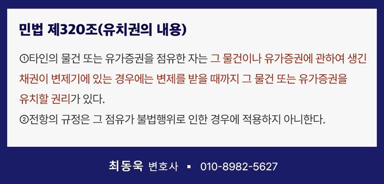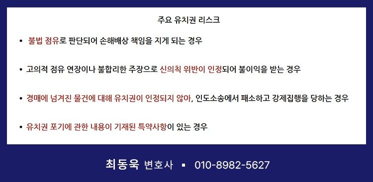하지만 일부에서는 법적 요건을 충분히 갖추지 않은 채 무리하게 유치권을 주장하는 경우가 발생하고, 이로 인해 형사 고소나 손해배상 청구 소송 등 예기치 못한 불이익을 겪는 사례도 적지 않습니다.