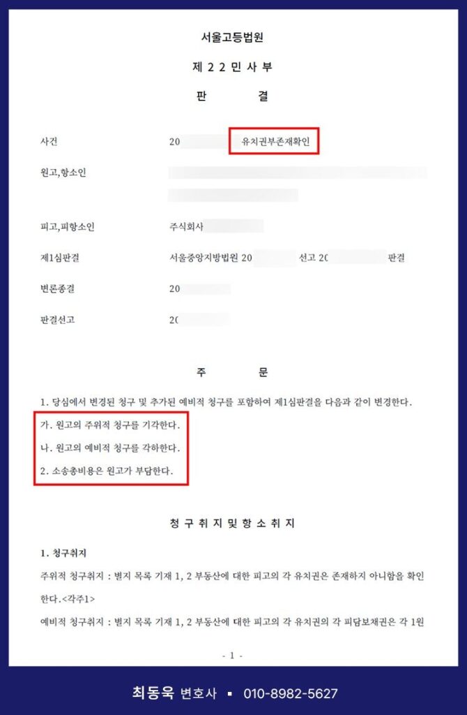 따라서 유치권 행사나 분쟁 대응을 준비하는 경우, 반드시 변호사의 조력을 받아 전략적으로 접근하는 것이 바람직합니다.