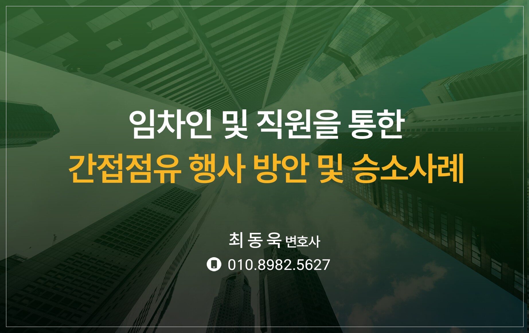 최동욱 변호사는 부동산 및 건설 분쟁과 관련한 다양한 소송을 직접 수행하며 쌓아온 풍부한 실무 경험을 바탕으로, 의뢰인의 상황에 맞는 최적의 해결 전략을 제공해 드립니다. 보다 구체적인 자문이나 전문적 도움이 필요하신 경우, 아래 연락처를 통해 상담을 받아보시기 바랍니다.
