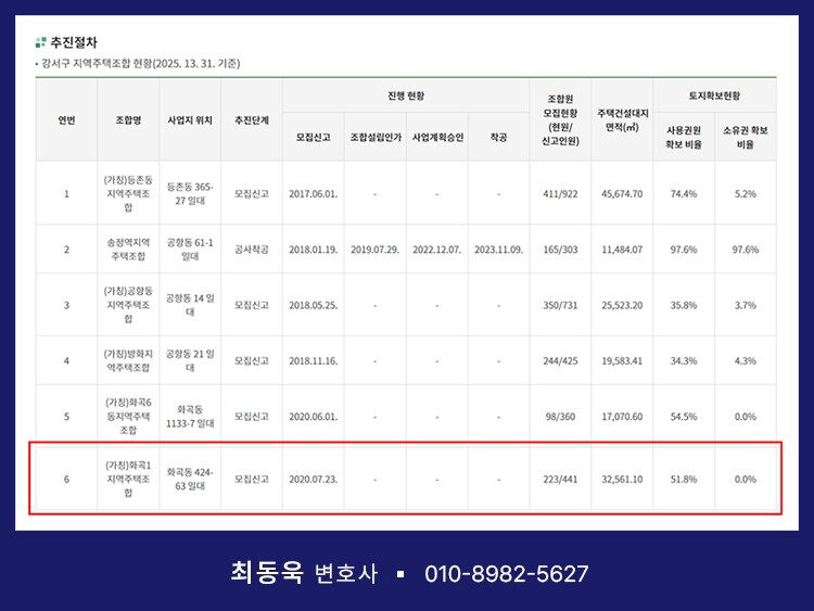 서울 강서구 화곡동 424-63 일대에서 아파트 건립을 목적으로 추진된 주민참여형 화곡1 지역주택조합은 2020년 조합원 모집 신고를 완료하였으나, 이후 상당한 시간이 경과하도록 사업이 실질적으로 진척되지 못하고 있는 상황입니다. 이로 인해 최근 들어 해당 사업장과 관련하여 계약취소 및 납입금 환불 가능성에 대한 법률상담 문의가 지속적으로 이어지고 있습니다.
