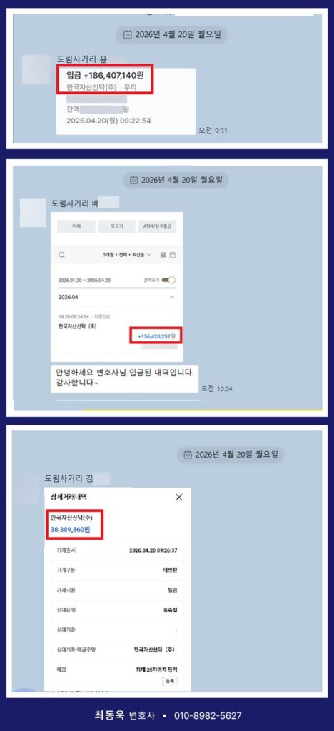 이후 해당 판결을 바탕으로 강제집행 절차를 진행한 결과, 의뢰인들께서는 2026년 4월 20일 실제로 합계 3억 8천만 원 전액을 회수하게 되었으며, 장기간의 분쟁을 마무리하고 일상으로 복귀하실 수 있었습니다.