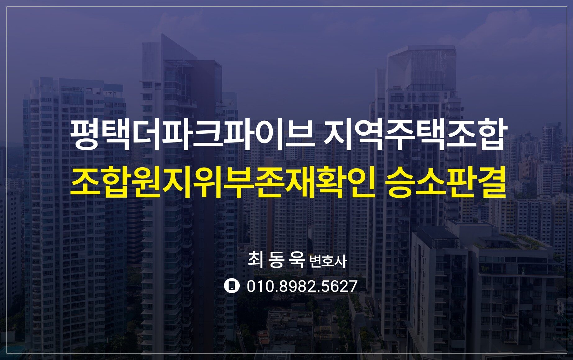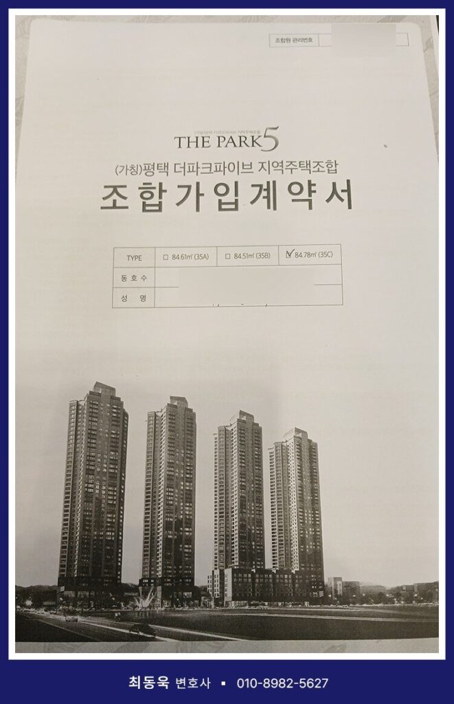 최동욱 변호사는 이러한 문제로 어려움을 겪는 계약자분들을 위해 꾸준히 법률적 도움을 제공해 왔으며, 최근에는 평택더파이브 지역주택조합을 상대로 한 사건에서 조합이 자격을 상실한 의뢰인에게 약 8,400만 원의 분담금을 반환해야 한다는 판결을 이끌어냈습니다. 이 성공사례를 통해 조합원 자격 상실 이후의 절차가 얼마나 중요한지, 그리고 법적 대응이 어떤 결과를 가져올 수 있는지 안내드리고자 합니다.