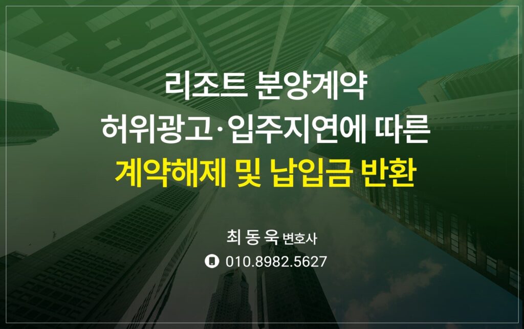 리조트 분양계약 입주지연 및 허위광고에 따른 분양계약 취소, 손해배상청구 및 납입금 반환 상담문의