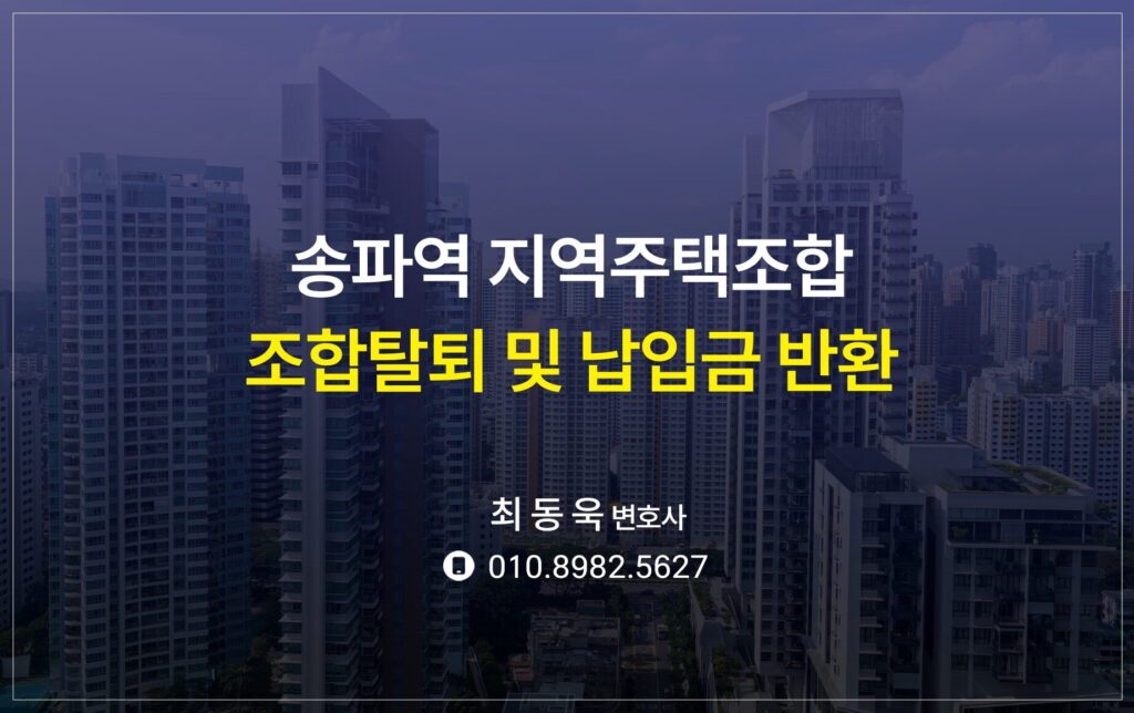 송파역 지역주택조합 조합탈퇴 및 납입금 환불 (송파라보로)