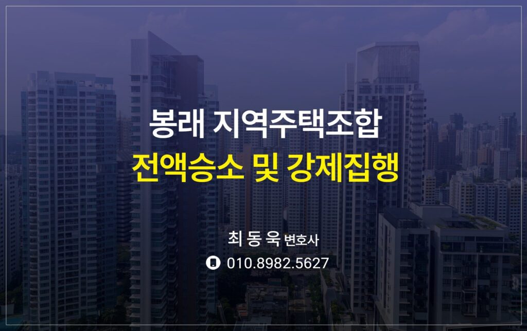 봉래 지역주택조합 상대 추가 전액승소 및 강제집행