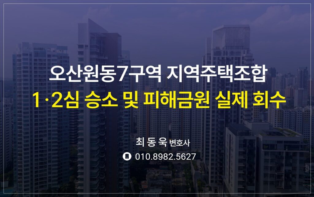 오산원동7구역 지역주택조합 상대 1·2심 모두 승소 및 피해금액 실제 회수