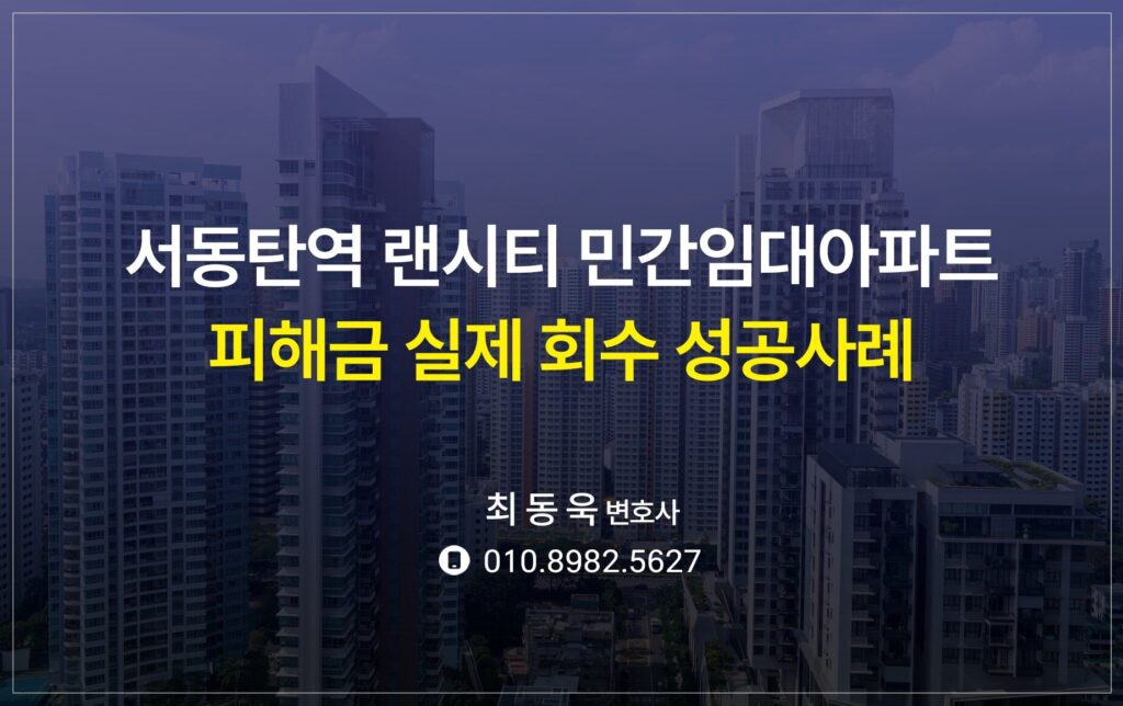 서동탄역 랜시티 민간임대아파트 피해금 7,500만 원 실제 회수 성공사례(센토피아주택개발협동조합)